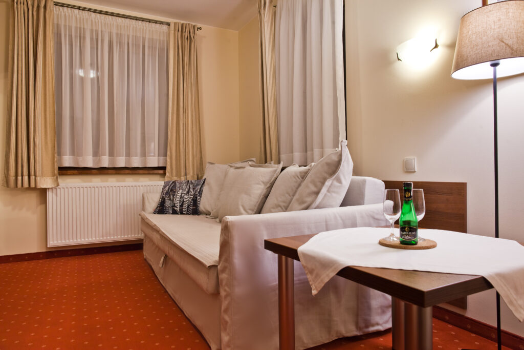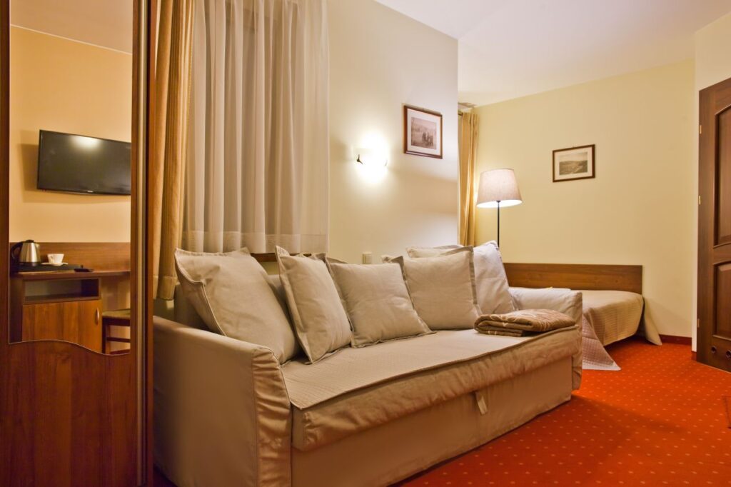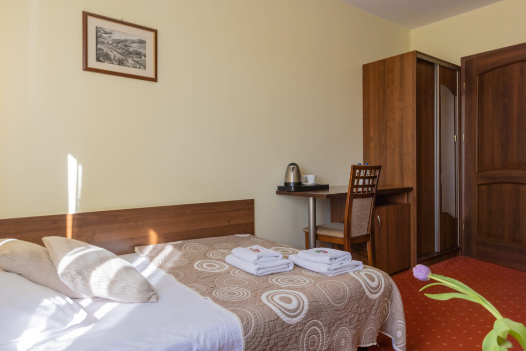 Dysponujemy pokojami jedno- i dwuosobowymi oraz przestronnymi apartamentami – wszystkie z łazienkami, Wi-Fi i balkonami. W cenę pobytu wliczone są śniadania oraz dostęp do parkingu i strefy wypoczynku. W ofercie także apartament zdrojowy – osobny obiekt z pełnym aneksem kuchennym